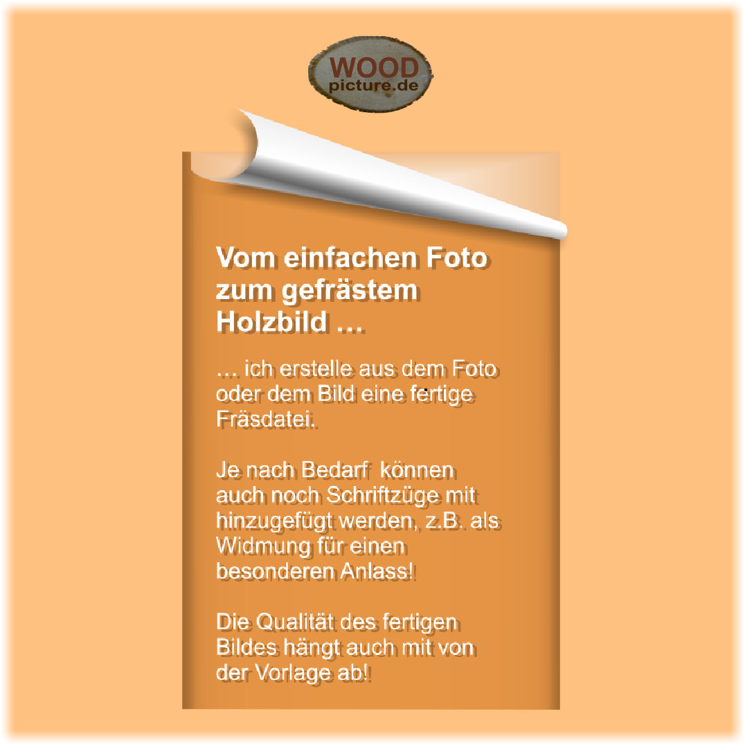 Mit einer CNC-Fräse, fräse ich dann aus der Vorlage ein Holzbild. (alles nach Ihren Vorlagen)